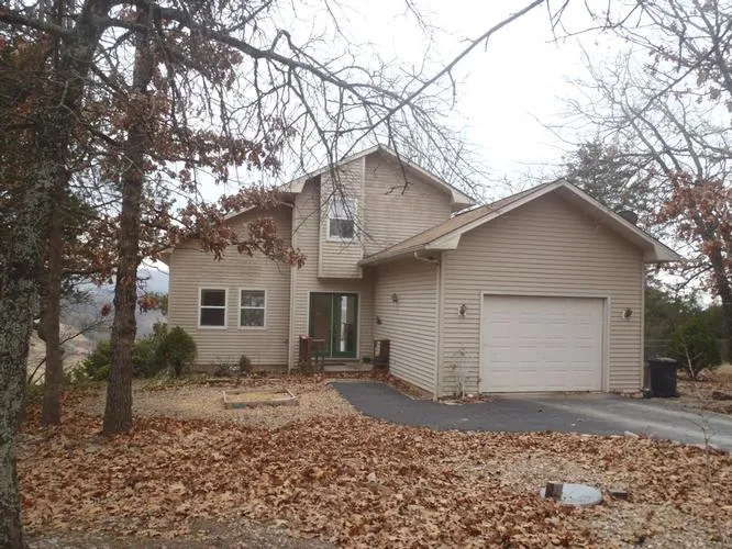 What an awesome view from this bluff home overlooking Crooked Creek and the large valley below. Private paved circle drive, Cathedral ceilingn, open kitchen area and big windows to take in the Southern exposure. Just needs a little TLC. Additional acreage is available and located only minutes from Flippin!