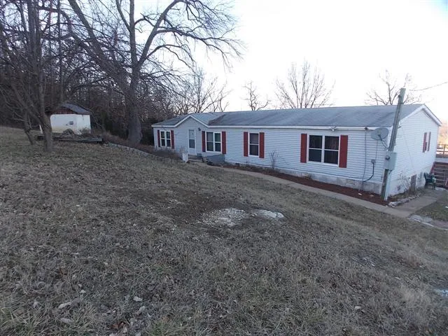 DISTANT LAKE VIEWS AND GORGEOUS COUNTRYSIDE VIEWS ON PRIVATE 13 ACRES M/L with a 1987 doublewide on permanent foundation. Home has 1904 sq. ft. of living area with an open kitchen, separate dining room, stone fireplace in living room and a sunroom with views. All 3 bedrooms have walk-in closets and the bathrooms are large. Other features include an oversized carport, small barn, and a 30'X 30' two story shop with separate electrical and stubbed-in plumbing ready to finish for an apartment or guest house. Close to Bull Shoals Lake access. $85,000.