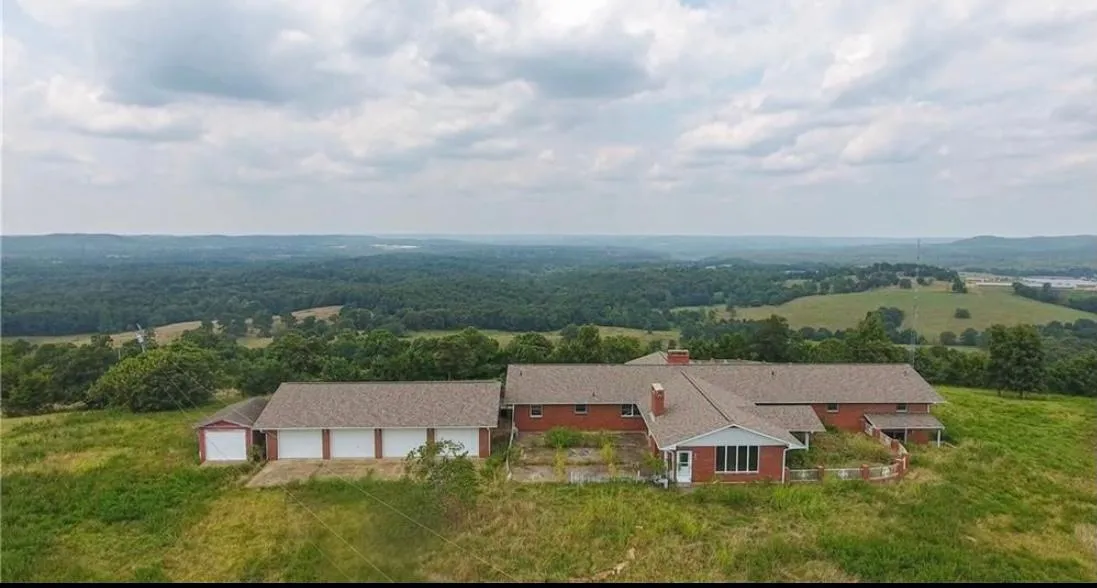 494 acres of pristine Ozark land with this mountain top estate, out in the country but close to everything. 7,000 square foot home with incredible view from every room with 6 bedrooms and 5 baths that need renovation. Also a 12,00 sq. ft indoor horse arena with stalls, tack room and office. Also included is a motor home garage that will house three 40 ft motor homes which also has tons of storage, a wash bay and office. This spectacular unrestricted land can be subdivided or made to anything imaginable, hunting club, retreat, equestrian center or even a residential subdivision for the ever growing Marion County Arkansas. 350 acres m/l of improved pasture with several ponds which will sustain 70-100 Moma cows and approx 150 acres of woods. Wild life abounds on this property.