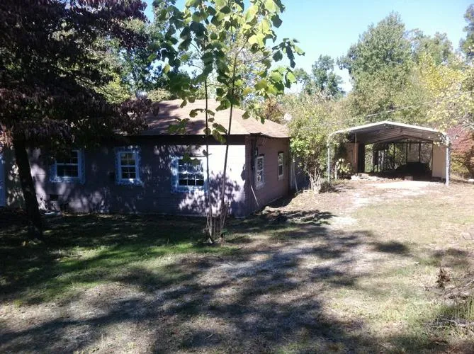 CK-3 Great fixer-upper home close to the Lake and situated on four beautiful lots in Bull Shoals. There is a nice private drive, large carport, nice back deck and two outbuildings. Agent owned.