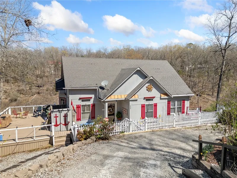 Welcome to this beautifully designed Cape Cod Lake retreat nestled in the serene surroundings of Bull Shoals. With 1645 sq feet of cozy nautical-inspired living space, this fully furnished 3-bedroom, 2 bath home offers the perfect blend of comfort and lake home charm. Step inside to a soaring 12-foot ceiling living room, where a cozy electric fireplace sets the perfect ambiance for relaxing. Outdoor living is a dream with expansive decks, including a large screened-in porch where you can soak in breathtaking lake views and witness some of the most amazing sunsets. The unfinished basement is plumbed for a half bath. There is a walkout that leads to an attached workshop idea for hobbies or extra storage. Sitting on .60 acre lot, this home is uniquely bordered on 2 sides by Corps of Engineers. Whether you are looking for a private getaway or a turnkey VRBO opportunity, this charming lake ho...