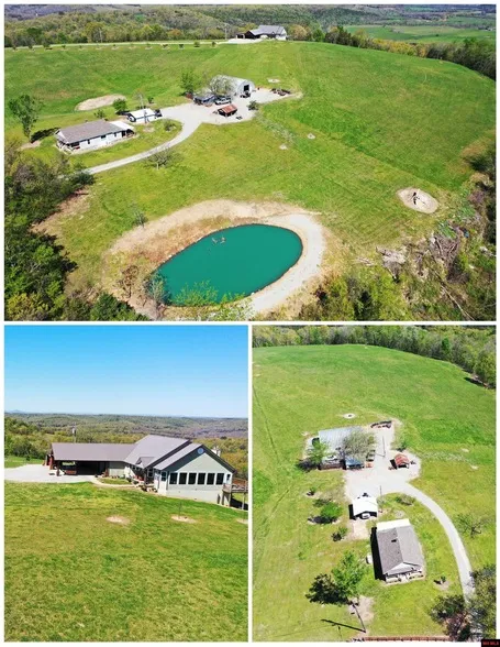 Discover a stunning 130-acre m/l retreat with two homes and 360 views of Crooked Creek. The main 2,400+ sq ft residence features 3 bedrooms, 2 baths, an open-concept layout, 18-ft vaulted ceilings, two fireplaces, granite countertops, and updated bathrooms. An oversized carport doubles as an outdoor entertaining space. Enjoy 2/3 wooded land with trails for ATVs, hiking, or horseback riding, plus 40+ fruit trees, a chicken coop, and a shop. The second 980 sq ft farmhouse, with 2 bedrooms, 1 bath, and a charming porch, earns $20,000/year as a VRBO or suits family use. Perfect for a private compound, recreation, or income, this property blends modern comfort with country living and breathtaking views.