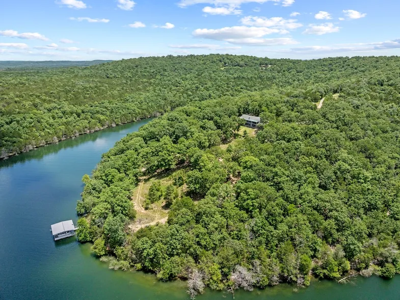 PRIVATE PENINSULA RETREAT | 62 ACRES | DOCK INCLUDED | FULLY FURNISHEDA once-in-a-lifetime opportunity 62 acres on a private peninsula, surrounded by Bull Shoals Lake on three sides. Unmatched privacy, panoramic views, and direct lake access set the stage for a lifestyle most only dream of. The fully furnished 3-bed, 3-bath home is built for lake living, with a wraparound deck, open layout, and peaceful views in every direction. The walk-out basement features a second living area, bonus room used as a guest bedroom, storm shelter, kitchenette, and a hot tub. Your own private two-stall dock with lifts conveys a major rarity on Bull Shoals, where no new dock permits are being issued. This dock is fully permitted and ready to use. With both boats included (with acceptable offer), you'll be on the water in seconds. The 62 acres offer a mix of woods and clearings with trails, wildlife, and multiple potential build sites. Ideal for a private family retreat, vacation compound, or future development. Extras include a detached 2.5-car garage with a studio apartment, a carport for winter boat storage, and an outdoor shower. Less than 10 miles from Lead Hill and just 5 minutes from the nearest boat ramp at the end of Camp Galilee Road (MC 2061), the property offers seclusion without sacrificing convenience. A true legacy property rare, private, and absolutely unforgettable.