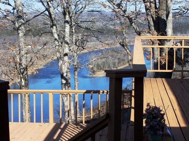 MILLION DOLLAR VIEW OF THE WHITE RIVER AND COTTER from your 1062 sq. ft. back deck on this 3 BR, 2 BA brick home on 1.89 acres m/l. Home has an open living area, tile and hardwood floors, a kitchen remodeled in 2008 AND has 180 feet of White River frontage. $229,500.