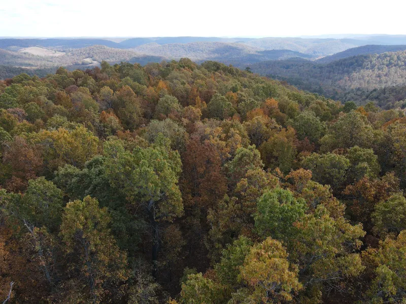 This stunning wooded tract sets nestled in the heart of some stunning scenery in the middle of the Ozark Mountains. The name says it all as the property is littered with some high-quality hardwood timber. The tree composition is mainly made up of white oak, red oak, hickory, and some maple. Several thickets consist of native wild blackberry, sumac, ragweed, and other species that prove to be an ideal area for deer to feed and bed. The surrounding area is most all timber and very remote. Laying out very nice, the topography is primarily a large ridge and then sweeps around to a “bowl” shape and a wet weather creek bed flows through one corner in a bottom. This creates several unique hunting opportunities due to the travel patterns these hill country bucks really like. The ridge top is obviously a favorite among bucks, the two draws create pinch points and a natural flow, a large flat poin...