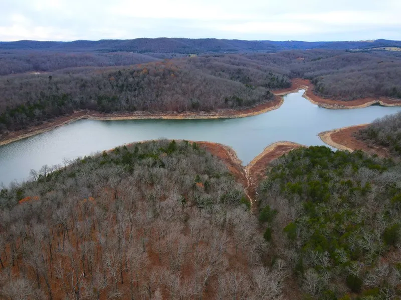 Remarkable land with multiple options fronting the famous Bull Shoals Lake doesn't come up very often. This unique dream site is sure to impress. Located just West, across the lake, from the city of Bull Shoals, AR, you are near many restaurants, lodging, recreational opportunities, and more. This region is also known for its large whitetail deer, turkey, black bear, and other large and small game. The rolling terrain is accessed easily off the gravel county road and offers many options for development, building, or virtually any other venture. The property lays out with several ridges that gently cascade down to the water's edge of Bull Shoals Lake and present options for additional hunting, camping, hiking, and phenomenal fishing. The largemouth bass, catfish, crappie, smallmouth bass, walleye, and other fish species all call this renowned lake home. This stand of mature and marketable...