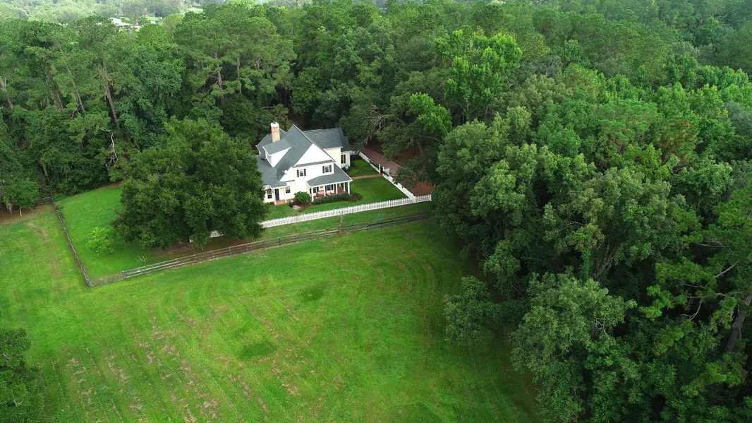 44 Acre Southern Living Equestrian Estate is surrounded by a white picket fence and Historic Charm. This charming 4-bedroom, 3.5-bath residence is the finest in ''horse country'' living. The main floor is superbly designed with a combination library/office/music room, lovely formal dining room, well-appointed kitchen with dining area and high ceilings. The sunlit family room with fireplace opens to a covered, screen-enclosed patio. Equestrian Amenities: 6-stall barn with apartment plus an additional 6-stall barn with 1/2 bath. Additional acreage and barn is available. Purchase Options: $2,600,000: 44 +/- Acres Main Residence 6 Stall Stable with Apartment, Additional 6 stall barn with half bath, irrigated paddocks, tree covered riding trails and open riding areas.