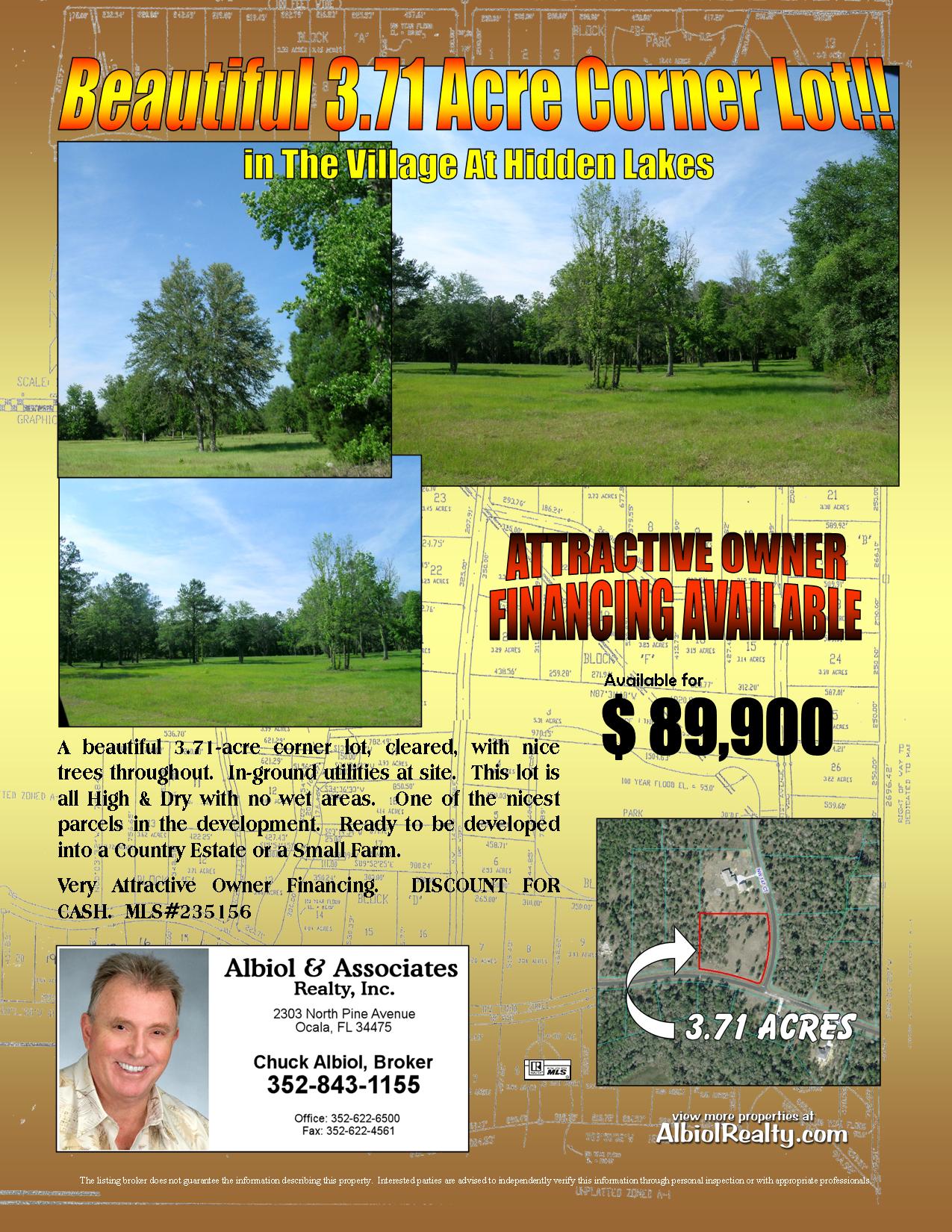 Beautiful corner lot (Block E, Lot 12) in The Village at Hidden Lakes, cleared with nice trees throughout. In-ground utilities at site. Bridle Trails. This lot is all High and Dry with no wet areas. One of the nicest parcels in the development. Ready to be developed into Country Estate or Small Farm. Owner May Finance.
