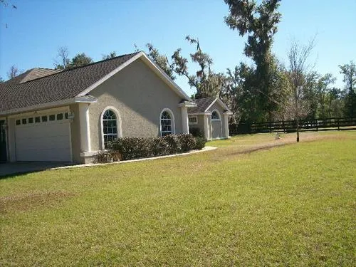 Beautiful 2500 sq.ft. home-all tiled floors. 4 bedroom 3 bath, screened heated pool, split bedroom plan,vaulted ceilings,den,2car garage, property is fenced 3 paddocks, 4 stall barn,round pen.