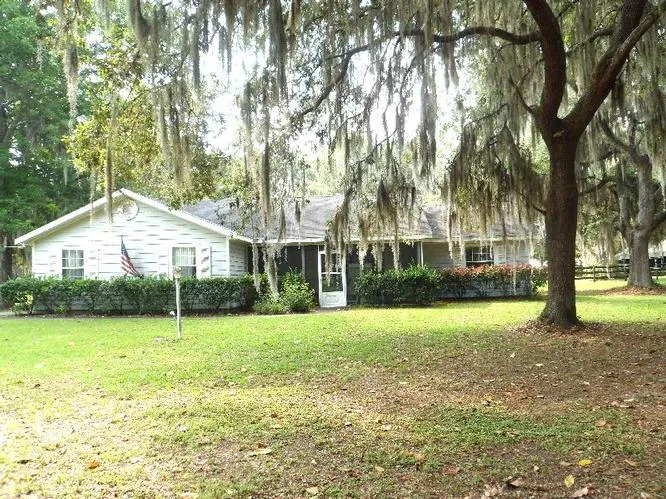 Beautiful oak-studded 4.35 acres - fenced into 3 paddocks - water to all paddocks - Charming ranch style home with front and back screened porches - split bedroom plan - 3 bedroom 2 bath - spacious kitchen with window looking out to pasture - formal dining room - two car garage - has an old barn that could renovated - located just 6/10 of mile to paved road - no traffic road - dead end street - nice mini farms in area - located between Ocala/Gainseville - Priced to sell $205,000