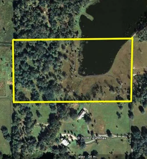 Great building site on a hill with magnificent Live Oaks and overlooking stocked lake.