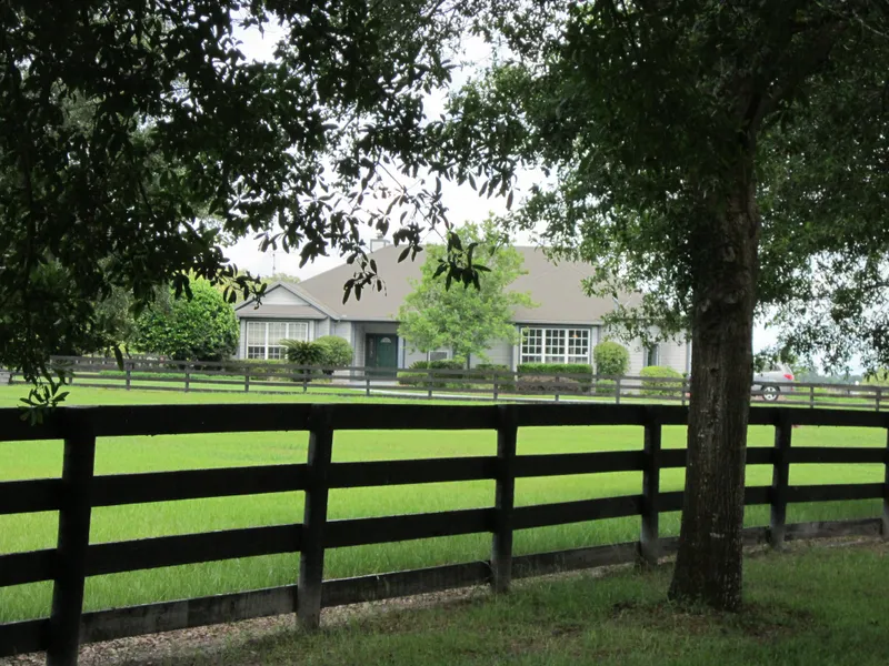 Quality and in perfect condition. 3/2 1/2 home has a large open floor plan, high ceilings and custom cabinets in the eat-in kitchen. 2 bedrooms with private deck pergolas. Separate computer/office, covered patio with wet bar overlooking screened salt water pool. Lush pasture, tree lined drive, 5 stall CB barn + tack room and large storage areas for equipment. 1/1 apartment with cathedral ceiling & tile.