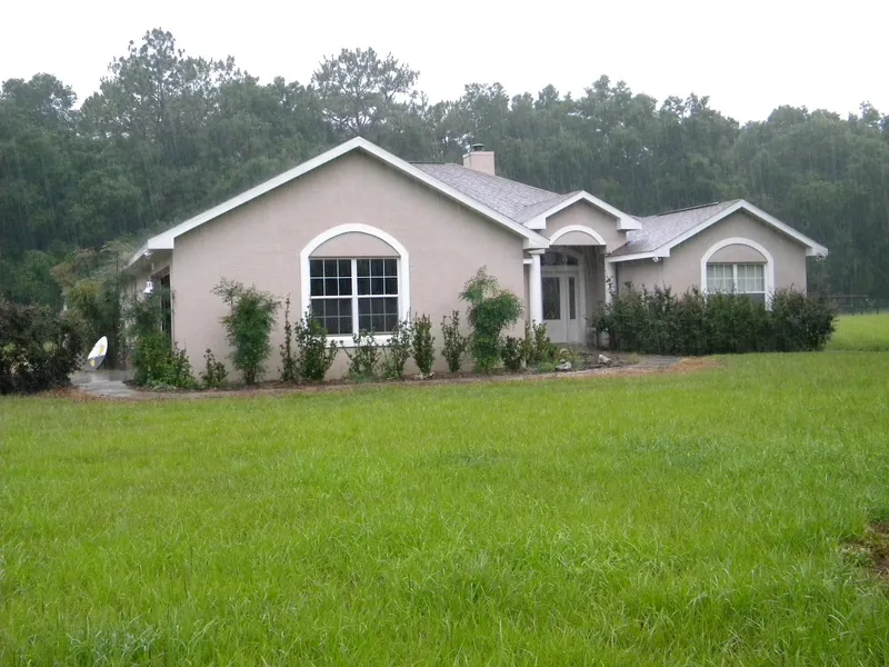 This 20-acre farm features a custom four-bedroom, three-bath home. Features include high ceilings, large kitchen with lots of cabinets, split bedroom plan, open feeling throughout which opens out to a screened pool and deck and a large two-car garage. Master bedroom has an adjoining room that can be an office, sitting room or fifth bedroom. Other amenities include a detached 900 SqFt block building which can be used as a garage, workout room, game room, shop and may be converted into a guest house. Two pole barns with room for equipment or stalls, a large workshop, several pens and corrals for animals, all on 20 acres of prime pasture that is fenced and Cross-fenced for horses or cattle. This is a great location in south Marion County on a paved road and conveniently located between Belleview and The Villages and near the Florida Horse Park and I-75. Owner will divide. House, block build...