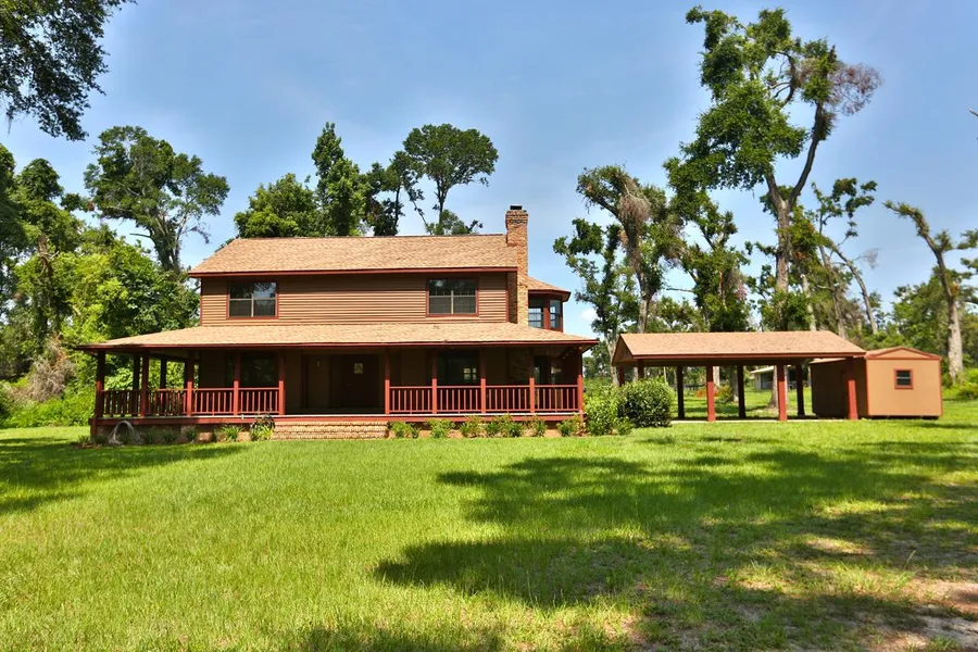 10+ Acre gentlemen's farm located just minutes to premier shopping, dining, hospitals, and a short distance to the World Equestrian Center. The 2-story home has a wraparound Pine and Cedar porch and features: 5 BR, 3 BA, great room with brick wood-burning fireplace opens to kitchen and dining room. The home has wood floors and ample windows to enjoy the outdoor views. Spacious owner's suite with sitting area, bath with custom built walk-in shower and dual vanities. Property is peaceful and quiet. Plenty of room to ride your horse. It includes a lit arena, 4 stall barn, 4 paddocks plus you can pull up and park under your 3-car covered- open carport.
