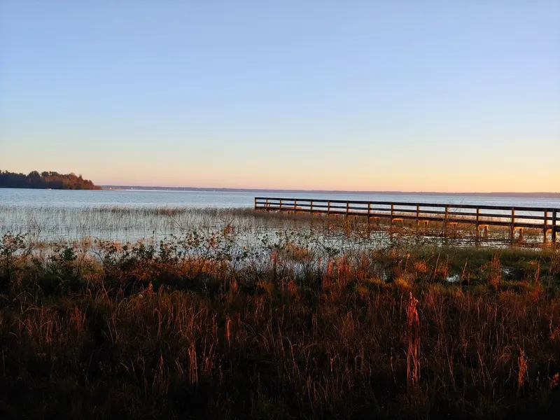 BEST WATERFRONT HOME SITE ON LAKE WEIR!! Premier lakefront home site on private 13 acre premium waterfront lot on beautiful Lake Weir. Custom designed 1750 sf. two story home situated on extremely secluded property with 300+ feet of waterfront with private beach. Live in the cozy guest house while you build your own dream house. Home site is engineered for master plan which can include main home with garage, guest home, 4 car utility structure with tool room and man cave and landscape shed. There is plenty of room to build your dream house here. Existing home "Guest House" includes 3 bedrooms, 2 baths, modern gourmet kitchen with granite countertops, stainless steel gas stove, microwave, ice maker, refrigerator, and maple hard wood floors. Also includes 10x60 screened in under roof half wrap porch with granite outdoor bar overlooking the private beach, orange grove, and a magnificent view of Lake Weir. Property also includes detached 12x10 landscape shed, 200+ feet of boardwalk and dock, perfect for boating or fishing. Wonderful layout for exceptional viewing and recreational pleasure. There is even a private paddock for horses. Grab your fishing pole and fish right off your private dock, or enjoy a cup of coffee with the deer, otters, bald eagles, owls, bob cats, turkeys. Natural Florida at its finest! Located just 5 miles from The Villages shopping and restaurants yet far enough removed for your own private paradise. Lake Weir is the finest recreational lake in Florida.
