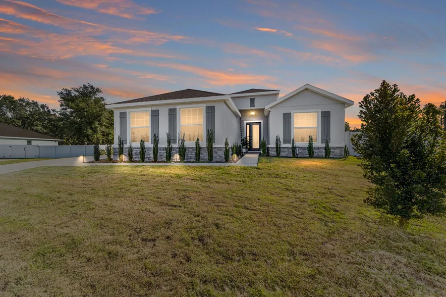 Modern Comfort Meets Sustainable Living in Magnolia Manor -- Welcome to your SE Ocala dream home, located in the private, gated enclave of Magnolia Manor. Built in 2020 and meticulously maintained, this four-bedroom, three-bath residence blends contemporary design with energy efficiency on a fully fenced 0.77-acre lot. Inside, an open-concept layout flows seamlessly through spacious living and dining areas, anchored by a gourmet kitchen featuring high-end Café and stainless steel appliances, granite countertops, a large island, and custom cabinetry. Ideal for both quiet evenings and lively entertaining, the home's thoughtful design enhances comfort and functionality. Outdoors, enjoy your own private retreat with an expansive pool deck perfect for year-round enjoyment. The three-car garage includes epoxy floors, offering durability and style. Solar panels provide sustainable living with s...