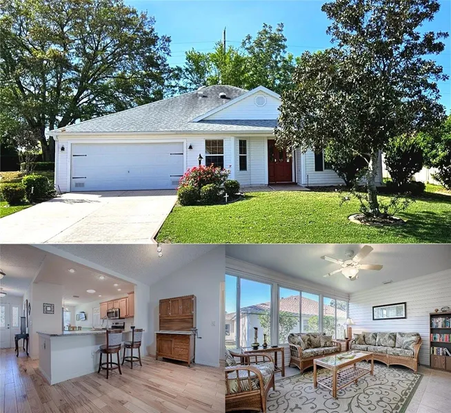 Under contract-accepting backup offers. Step inside and experience AFFORDABLE Florida living in this well-maintained Wisteria designer home nestled in a PRIVATE, PARK-LIKE setting. The 15’ x 12’ SUNROOM offers an ideal space for entertaining guests or enjoying a quiet evening, complemented by the adjoining 10’ x 12’ SCREENED LANAI and a 12’ x 4’ concrete pad designed for grilling. Both the sunroom and lanai are equipped with 200-amp service, suitable for accommodating a hot tub or spa. This SPLIT-BEDROOM layout grants privacy, with two guest bedrooms that can serve as comfortable spaces for visitors or function as an office or hobby area. The primary bedroom features tranquil views of the private backyard, a walk-in closet, and an en-suite bathroom. The home operates on GAS, allowing for culinary convenience in the open kitchen, which includes stainless steel appliances, GRANITE countertops, and ample storage and counter space. Additional features include volume ceilings, HICKORY HARDWOOD flooring in the main living area, kitchen, and third bedroom, and SOLAR TUBES in the kitchen and main living area. The garage measures 25’ x 20’, providing sufficient space for a workshop. Recent upgrades include a NEW ROOF installed in 2020, a GAS WATER HEATER replaced in 2025, and a new gas HVAC system installed in 2019. While the current range and clothes dryer are electric, gas lines are installed for easy conversion. A transferable termite service contract is in place, and the purchaser will have the option to acquire furnishings prior to an estate sale. Located just minutes from The Villages’ town squares, medical facilities, shopping, recreation, restaurants, and more, this property is VALUE-PRICED with the bond already paid. Residents will also enjoy proximity to golf courses, walking trails, and community centers. Whether seeking to downsize, relocate, or secure a seasonal residence, this home offers comfort, functionality, and readiness for immediate occupancy. MAKE THIS OUTSTANDING PROPERTY YOUR NEW HOME TODAY!