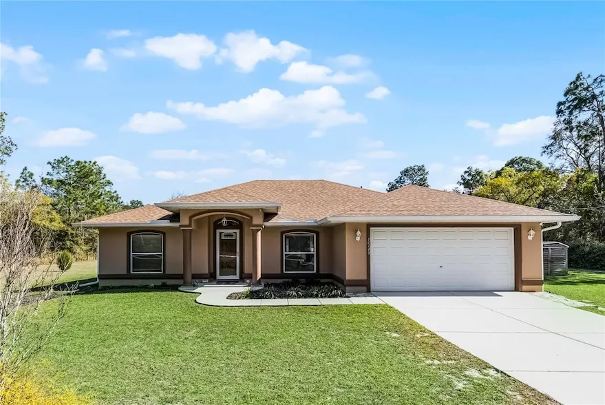 Welcome to 16140 SW 47th Place Rd. This meticulously well-maintained pool home is perfectly situated on 1.27 acres in the quiet community of Rainbow Park in the Southwest corner of Ocala FL, offering a serene escape to your own paradise. This 3-bedroom, 2-bathroom home offers 1,818 square feet of living space with high ceilings and ceramic tile throughout the main living spaces with carpet in the bedrooms. The entryway is spacious and welcoming, leading up to a large living room open to the kitchen creating a functional flow. Additional features inside include a separate dining room and a versatile study, ideal as a home office or den. The spacious primary bedroom includes a large walk-in closet and an ensuite bathroom featuring a garden tub, a separate shower, and dual vanities. On the back of the home, you have a large screened in patio allowing you to enjoy the outdoor space year-round, leading you to a boardwalk walkway that leads you to the inground pool, surrounded with a vinyl fence for privacy, and a covered Tiki Bar all creating an ideal space for relaxation and entertaining. The Tiki Bar is under an 18 x 15 metal roof and has a stainless-steel sink. This property also features a 20 x 25 workshop on a concrete pad with a car lift, 2 car garage with poxy floor coating and wash sink, and 2 motorized entry gates for added convenience. The roof was completely redone in 2022 and had ventilation installed to help with energy efficiencies. NO HOA. NO CDD. This home has been extremely well taken care of with attention to detail and it is going to be a real treasure for the next homeowner. Stop looking and make this your own oasis to escape. Call and schedule your private showing today.