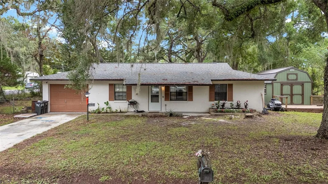 ***PRICE REDUCTION*** CLASSIC CHARACTER FRAMED BY TREES! This home features 3 bedrooms 2 baths with a split bedroom plan on a corner lot. Freshly painted interior, 1 Car garage with new epoxy flooring, and a New 14' x 12' shed – perfect for storage, a workshop, hobby space, or even a man cave. Kitchen cabinets and countertops will be remodeled soon. Enjoy the shade of trees with one having a sturdy treehouse and a partially chain link fence. Fruit trees are an added bonus with a Loquat 'Japanese Plum' Tree and Orange tree to enjoy during their season just know it's big enough for beauty and small enough for easy care. Convenient location just minutes from local schools, shopping centers, and medical facilities. With new A/C replaced in 2020 and new roof in 2022. This home will include Washer/Dryer, Fridge, Dishwasher and Stove. This will not last! WHY WOULDN'T YOU CHECK THIS OUT