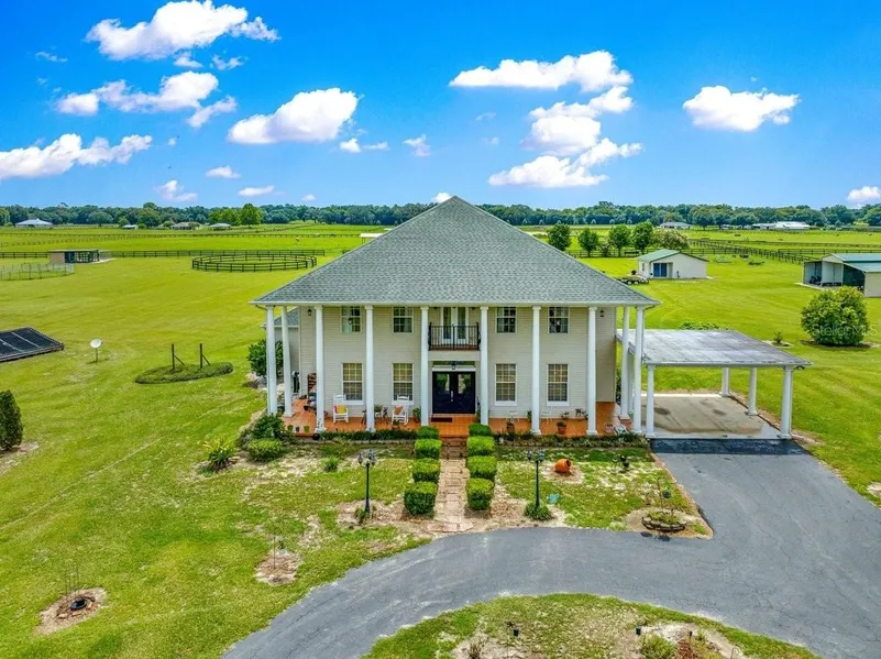 This Horse farm is over 16 acres and has been meticulously taken care of by these original owners it's whole life and it shows. Currently a home to Horses, Cows and Chickens. All pastures, stable, and chicken coop have water so that you never have to carry water to your animals again. The house , barn, and the well are wired with a generator plug just in case you ever loose power. The barn has six stalls one is currently a tack room and one is a feed room. The complete property is fenced in with a gated entrance that has solar and regular power. In 2025 the driveway has been repaved, a new water softener was added to the well, The fence was painted, rock landscaping was added around the grounds for easier mowing , and the pool deck was painted. The open floor plan is great for large family or friend gatherings. After a long day of horse back riding the large pool is great relaxation to get you ready to ride the next day. The home is set up for one floor living with the master bedroom, second bedroom, two full bathrooms, Grand Kitchen and living combo, with laundry on the first floor the second floor can be for your guests. The formal dining room is very large to accommodate all your guests and a den/sitting room next to the dining room is a great place to socialize with great friends or relatives. The home is very open ,light, and bright and was built with the idea no matter where you are in the house you are always part of the conversation. An extra storage building has been built on the property that can be easily converted to fit extra needs. This property is very large and can accommodate a lot of different family needs. Homes in this horse community are not on the market long. Call today for a private showing before it is gone.