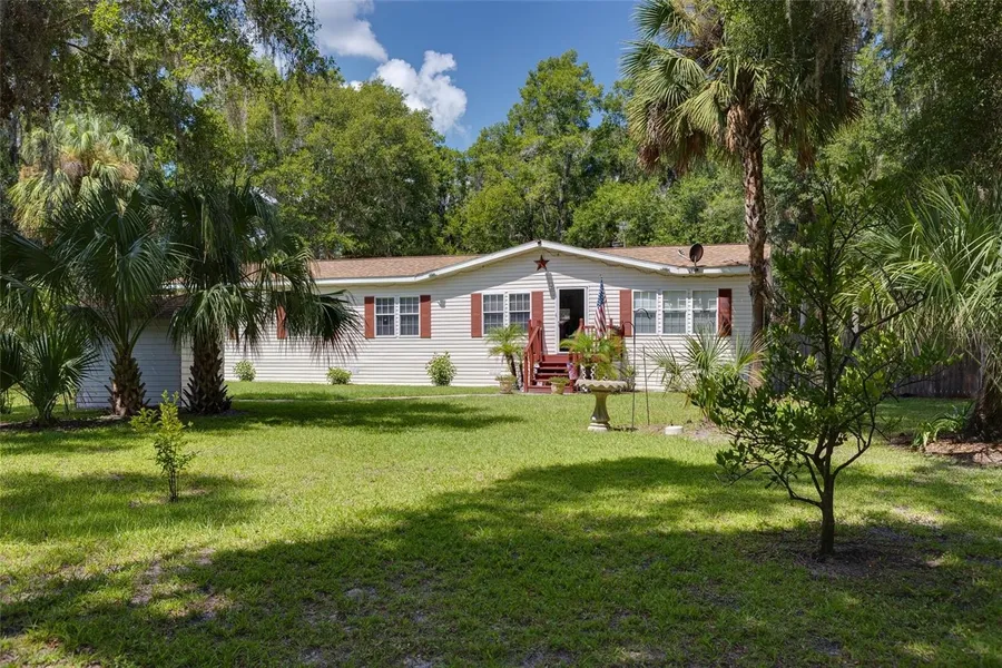 High and Dry!! Welcome to your Country Getaway featuring a large 3-bedroom, 2-bath home with 1,836 living square feet, nestled on a generous 1.07-acre lot. Centrally located within 45 minutes to 2 hours from beaches, Orlando, and Gainesville. Lots of springs, lakes, and close to the Ocala National Forest. The open-concept layout centers on a large living room with a wood-burning fireplace, making it ideal for cozy gatherings or relaxing evenings. The eat-in kitchen features upgraded granite countertops, solid wood cabinetry, and lots of counter space with an island, perfect for meal prep and entertaining. Enjoy the outdoors? Step out onto the back deck, great for morning coffee or sunset