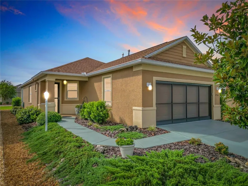 Under contract-accepting backup offers. NOW AN EVEN BETTER PRICE!! IT'S TIME TO TAKE ANOTHER LOOK AT THIS BEAUTIFUL HOME. THE SELLERS ARE MOTIVATED. Welcome to this beautifully upgraded Oren model in the highly sought-after 55+ community of Indigo East, On Top of the World. Thoughtfully designed and meticulously maintained, this residence offers comfort, style, and convenience at every turn. Step inside to find wood-look ceramic tile flooring throughout, accented with crown molding and double chair railing for timeless elegance. The open-concept kitchen boasts granite countertops, a natural gas range, a spacious pantry, and ample storage, seamlessly flowing into the living and dining areas—perfect for entertaining. The living room opens to the Florida Room through custom doors, and with full heat and air, it’s ideal for year-round enjoyment. The primary suite features a tray ceiling, a generous walk-in closet, and a spa-like en suite bath with a tiled walk-in shower and dual sinks. A guest bedroom and convenient inside laundry room complete the interior. The garage is equipped with convenient upgrades including a whole-house surge protector, water softener, utility sink, overhead storage, and a screened enclosure. Outdoors, you’ll love the expansive buffer zone behind the home for added privacy, custom low-maintenance landscaping, and a sealed driveway and sidewalk. Indigo East offers an exceptional lifestyle with a community center, fitness facility, two swimming pools, and a wide variety of clubs and activities to suit every interest. Don’t miss your opportunity to own this stunning upgraded home in one of Ocala’s most desirable 55+ communities! THE 2022 EVOLUTION GOLF CART AND THE FURNISHINGS ARE NEGOTIABLE AND COULD BE YOURS WITH THE PURCHASE OF THIS AMAZING HOME!