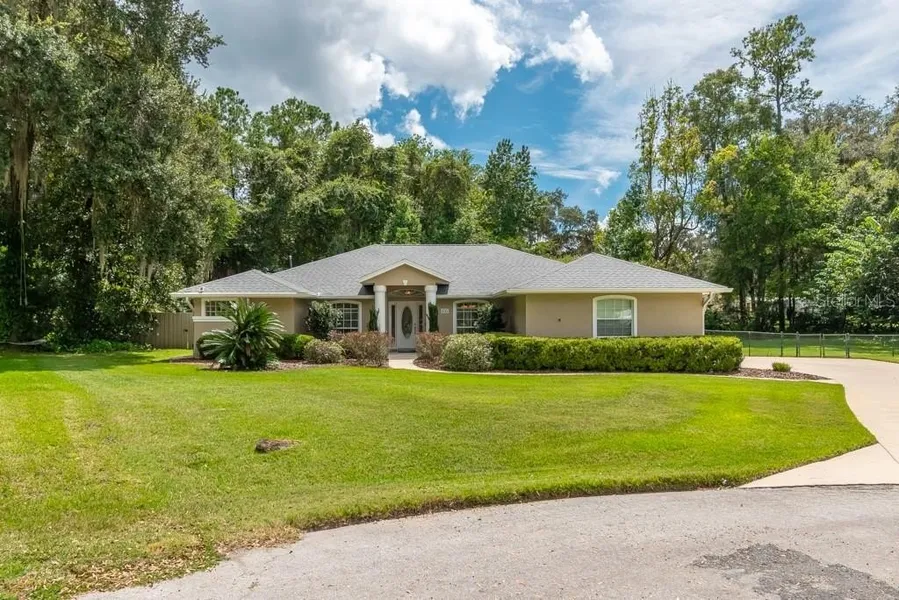 Welcome to this beautifully updated 4 bedroom, 2.5 bath home situated on a private ½ acre lot with a fully fenced and professionally landscaped yard. The highlight of this property is the completely remodeled screened pool featuring elegant glass tile, travertine stone decking, a covered outdoor lanai, outdoor shower, and half bath —perfect for year-round entertaining.