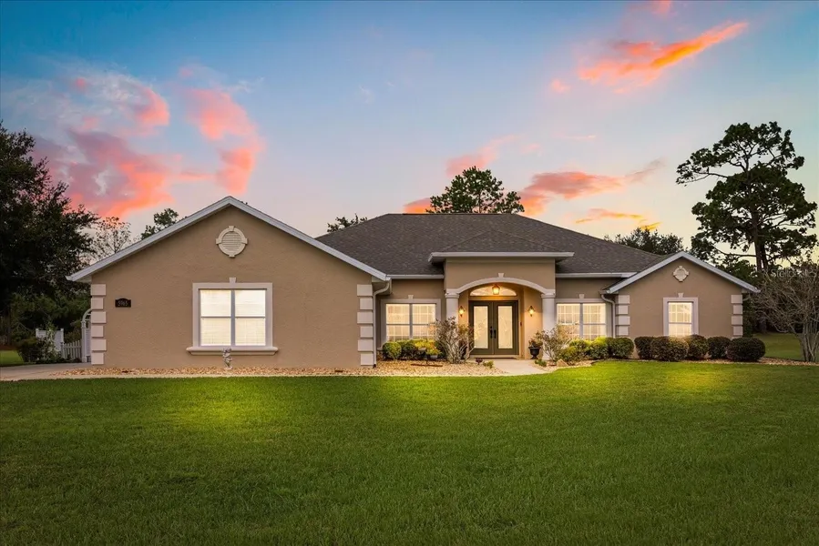 The primary suite includes his-and-her closets and a spa-like bathroom with an oversized shower, garden tub, and double vanities. Additional highlights include immaculate landscaping, a covered lanai with patio speakers, vinyl flooring in the third bedroom, a water softener and filtration system, a transfer switch for a portable generator, and a brand-new roof (2023). The 11-zone sprinkler system maintains both front and back yards. For just $42 per month, the HOA includes access to tennis, basketball, and racquetball courts. Conveniently located near Silver Springs State Park, shopping, dining, and minutes from downtown Ocala, this home delivers the space, durability, and quiet lifestyle you’ve been looking for. Schedule your tour today!