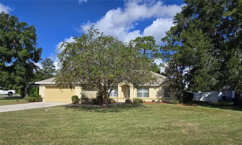 Welcome to this beautiful 3-bedroom, 2-bath pool home with a spacious office/den that could easily serve as a 4th bedroom. The thoughtfully designed split-bedroom floor plan features cathedral ceilings, a cozy corner fireplace, and an abundance of natural light. The kitchen is a chef’s delight with striking Black Galaxy granite countertops, breakfast bar, and a sunny dining nook. The primary suite offers two closets and a luxurious bath with dual sinks, garden tub, shower, and private water closet. Enjoy poolside living from multiple vantage points—the living room, kitchen, and primary suite all overlook the screened-in pool and enclosed lanai. Additional highlights include an indoor laundry with utility sink, oversized 2-car garage with side entry door, and a vinyl-fenced backyard offering privacy and space to entertain. Evergreen Estates is a ...