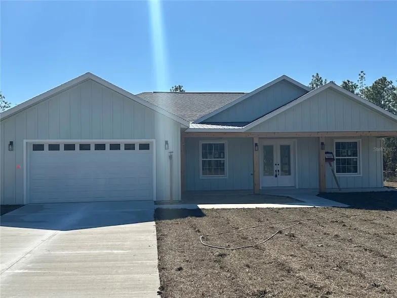 One or more photo(s) has been virtually staged. Under Construction. Welcome to this beautiful farm-style home in the heart of Rolling Hills! Sitting on 1.16 acres, this 4-bedroom, 2-bathroom home with a two-car garage perfectly combines modern comfort with rustic charm. From the moment you walk in, you ll love the high ceilings, open layout, cedar wood columns, and gorgeous quartz countertops. The kitchen is the heart of the home complete with stainless steel appliances, a large island with a built-in drawer microwave, and a kitchen hood with exterior exhaust. The spacious living room features a built-in electric fireplace and plenty of room to entertain or relax. French doors open to the covered lanai, perfect for enjoying your morning coffee or evening breeze. The primary suite is a true retreat with a beautiful bathroom featuring dual vanities, a large walk-in shower with a built-in bench, and elegant finishes throughout. Enjoy peaceful country living from your large front porch or lanai, all while being just minutes from the World Equestrian Center, Rainbow Springs, and I-75. This home offers the perfect balance of comfort, style, and convenience.