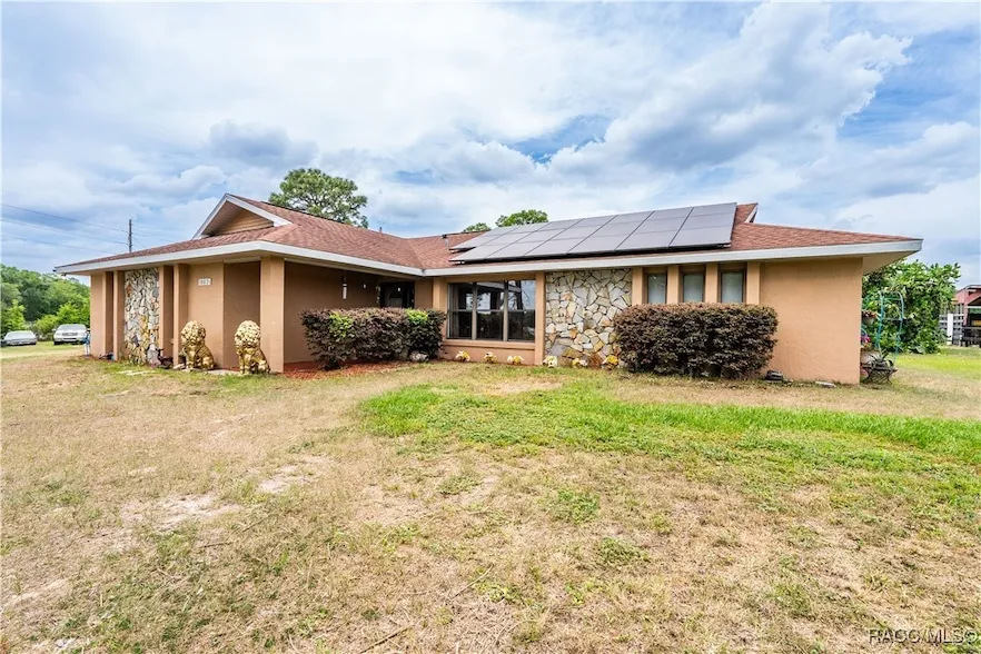 Located just four minutes from the World Equestrian Center, this 6.6+ acre fully fenced flag lot offers the perfect blend of seclusion and convenience. Surrounded by mature trees, the 3-bedroom, 2-bath home features an open floor plan, spacious dining area, and an air-conditioned back porch for added flexible living space. The property is well-equipped with an oversized workshop and RV garage, a 27x22 enclosed garage with 110 & 220 power, a 39x16 covered RV hookup with 30-amp service, a 3-stall pole barn, and a unique air-conditioned shed great for additional living, storage or a workspace. A shingle roof approx. 8 9 years old, Flood Zone X location, and seller-paid solar panels at closing add peace of mind and value. This rare Ocala property delivers space, versatility, and proximity to one of the area s most sought-after destinations.