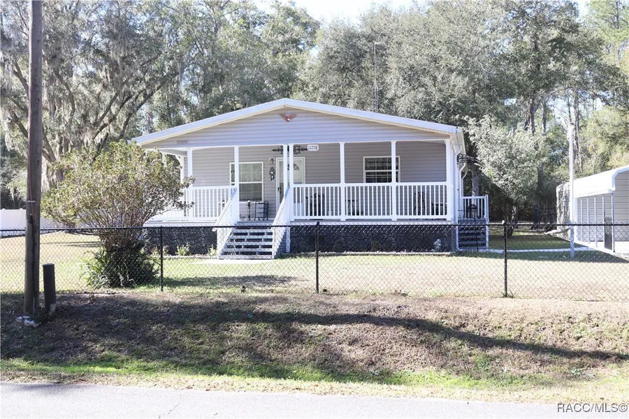 Wonderful home in a super great neighborhood. Enjoy a beautiful front porch just like in the olden days. Frontload kitchen and living room. Indoor laundry and an oversized primary bedroom with its own quiet sitting space. Back yard backs up to a beautiful, wooded area and a large firepit for that great memory maker. The community has a private park with access to the Withlacoochee River. Paved streets, no HOA and still a few miles into Dunnellon. Newly fenced and paved drive with a two-car port and a large work/storage area. Two wells on site and a double wide gate for easy access to backyard.