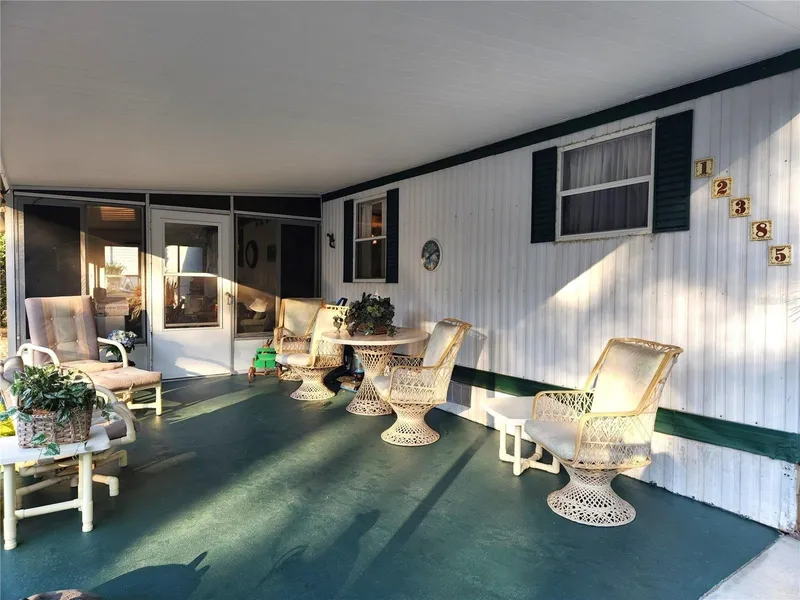 Well maintained 2/1 mobile home with an enclosed porch and attached carport in front plus a rear concrete patio that overlooks the fenced backyard and workshop/storage shed with electric. The home comes completely furnished including furniture, appliances, decorations, dishes, etc. - Perfect for a seasonal retreat. Central ac/heat updated in 2015. Located on a paved street in a small subdivision comprised mostly of site built homes. Conveniently situated between Ocala and The Villages. No HOA fees and not in a flood zone. Cash Only.