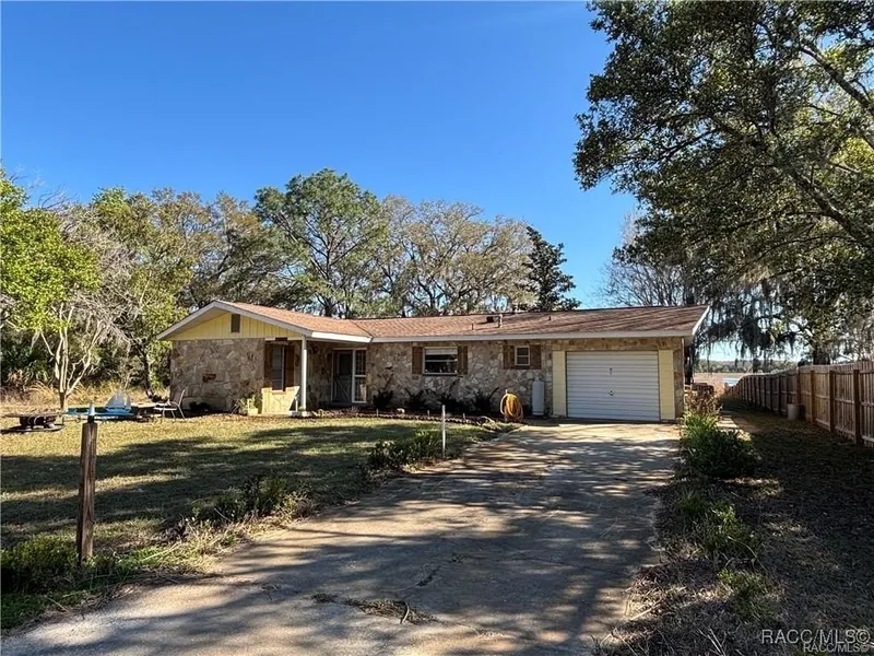 Imagine waking up to serene mornings and unwinding with tranquil evenings, all while gazing out at the picturesque "Little Lake Bonable." Nestled on a quiet cul-de-sac bordering the lake, Sailboat Cottage offers a delightful 2-bedroom, 1.5-bath retreat. The south-facing backyard provides unobstructed views across protected grasslands to the shimmering water. A bright and spacious sunroom spans the length of the home, creating an idyllic space to observe the lake and the surrounding nature. This light and airy home has been thoughtfully updated, featuring new flooring and a remodeled kitchen. The kitchen boasts sleek shaker-style cabinets complemented by butcher block countertops, a new stainless steel gas range with an externally venting hood, and a stainless steel refrigerator. You'll also appreciate the convenience of a large pantry with built-in shelves and a separate laundry room with a half bath. The property includes an attached single-car garage, as well as a versatile 12x12 detached block structure with a lake-view window - excellent for a workshop or your own creative space. Comfort is ensured with a new central air-conditioning system installed in 2020, along with a Culligan water filtration system featuring iron removal and softening, installed in 2022. Roof 2006. The water filtration system and well were recently serviced in January 2025. Nature enthusiasts will love the proximity to Rainbow Springs State Park and KP Hole, offering access to the crystal-clear waters of the Rainbow River. For those seeking urban amenities, downtown Ocala is just 30 miles away, while the charming antique and thrift shops of downtown Dunnellon are a short 20-minute drive. With an abundance of nearby lakes and rivers, this property is a fisherman's dream, promising excellent bass fishing opportunities. Whether you're seeking a permanent residence or a peaceful fishing getaway, Sailboat Cottage offers a truly special lifestyle.