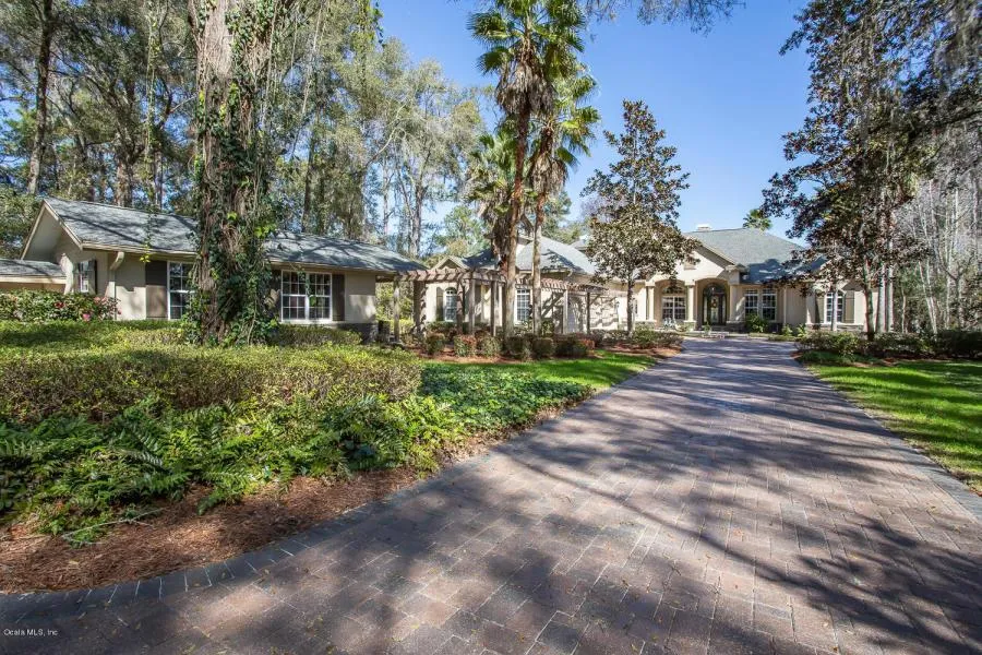 SPECTACULAR HOME not far from the head spring of the Rainbow River. The design, construction, and appointments are superior quality and all rooms have views of the crystal clear water and lush landscaping. The property includes a large screened area with pool, television, outdoor fireplace and cooking area, and there is also an adorable 1/1 guest house with +/- 468 sqft. All rooms have private baths and numerous amenities--perfection in every aspect.