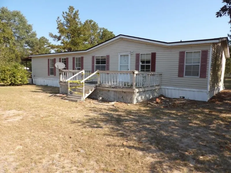 Great opportunity for a 1 acre lot in Marion Mobile Estates! Corner lot, with 3 sides of road frontage! Large front porch, as well as a covered side porch! Spacious living room with vaulted ceiling and fireplace! Open to separate dining area! Kitchen features stained cabinets, breakfast bar, and walk-in pantry! Large primary bedroom features vaulted ceiling, huge walk-in closet, and private bathroom with double vanity, large garden tub, and separate, oversized shower! Two spacious secondary bedrooms share another full bathroom! Fenced backyard with tons of level yard space! A must see! Don't miss out!
