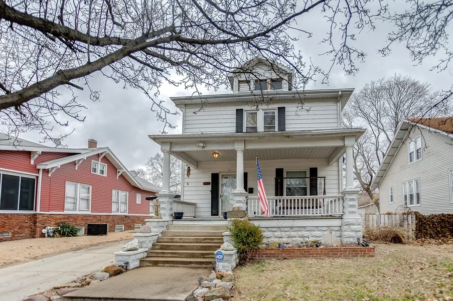 You will fall in love the second you see the covered front porch! This beautiful home has SO much space! Over 2100 sq feet of living space, with a fullbasement/partial finish. The main level has a large family room, separate formal dining and good sized kitchen. The floors are original hardwoods, laminate and carpet.The original woodwork is beautiful and the entry and stairway are very inviting. There is a laundry room and newly remodeled half bath, as well. The upstairs has 3 largerbedrooms and a full bathroom with brand new shower surround. The home has newer windows, HVAC and AC. The outside yard is fully fenced, and has a 2.5 oversizedgarage/shop with an office. Includes a smaller shed, as well.
