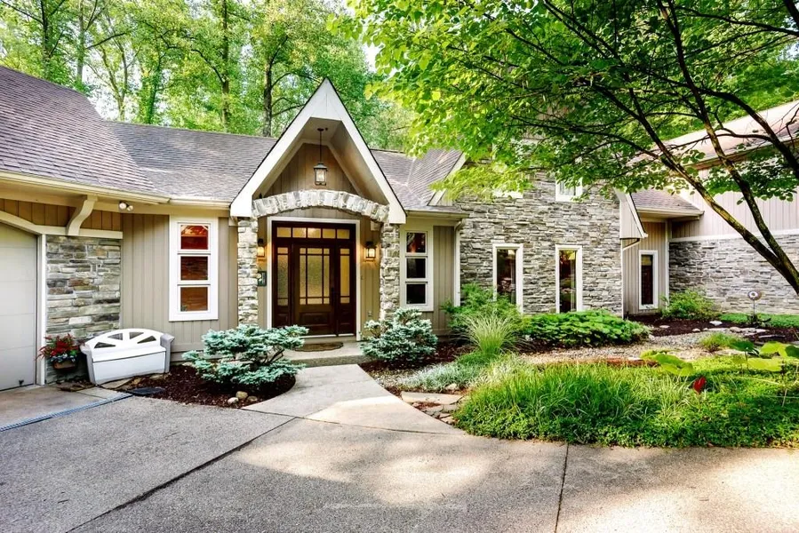Nature lover's paradise in wooded & elevated Knollwood neighborhood! 1 acre lot, "Montana" like home with gorgeous wooded back drop surrounded by total serenity! WOW, INDOOR BASKETBALL court is a total surprise serves as flexible space for hosting gatherings, workouts & yoga! Amazing curb appeal, 3 car garage designed for tall vehicles, gorgeous two story great room w/ custom paneled woodwork, fireplace, floor to ceiling windows where you will see deer, owls, birds of all kinds! Updated kitchen & baths, MAIN LEVEL MASTER SUITE. Multiple patio settings, enjoy outdoors on deck space with hot tub setting, walk-out basement, formal living room, huge kitchen w/ brkfst room & formal dining space for large gatherings, 20-25 minute downtown drive.