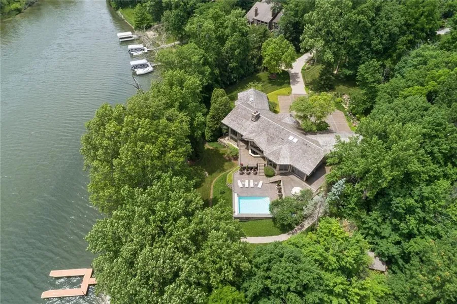 Tucked away along the shores of the famous Eagle Creek Reservoir, rests a gorgeous estate that boasts a very private, park-like setting. Capturing the sought after Mid-Century Modern style, the welcoming interior is the perfect blend of clean lines and bright open spaces. Massive, main floor owner's retreat has fireplace, library/sitting area and spa-like bath with jetted tub, walk-in shower and his/hers closets. Entertain with ease as your guests enjoy the multiple outdoor seating areas and crystal clear, in-ground pool; while overlooking serene water views. Shaded by mature trees, the winding path leads to private dock-making water access effortless. Home is waiting its new stewards to transform it to their personal style. Gated entrance.