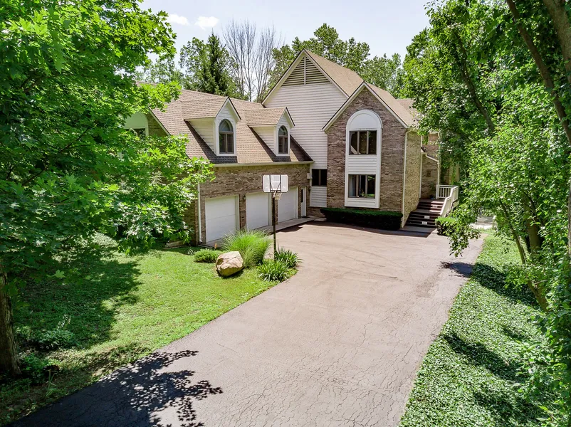 House on Eagle Creek reservoir in private gated community of Bay Colony. Dock owned and included on water inlet. 1 Acre Lot, w/mature trees,