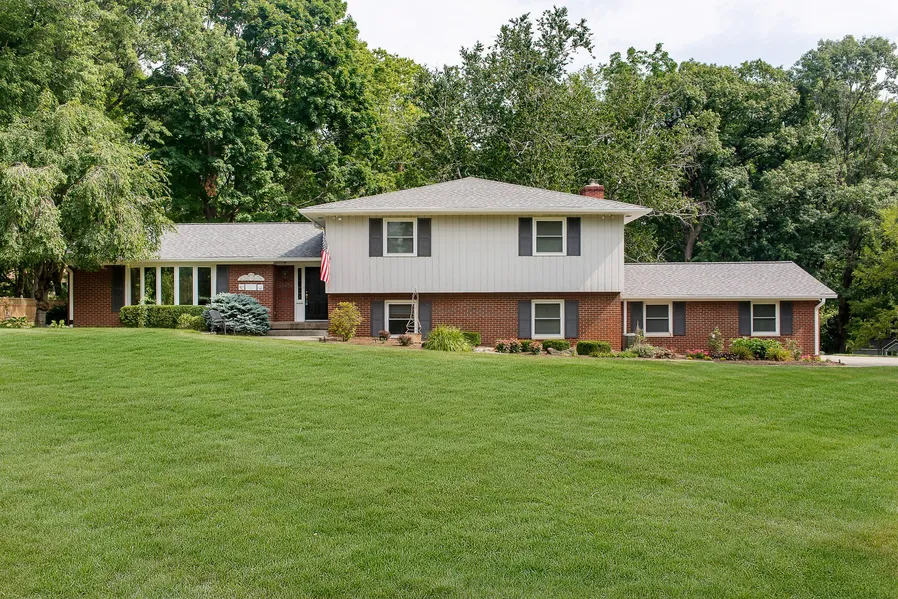 private backyard lined with mature trees. Roof & windows are only 3 years old! This stunning home sits atop a hill on 1.5 acres. Schedule a