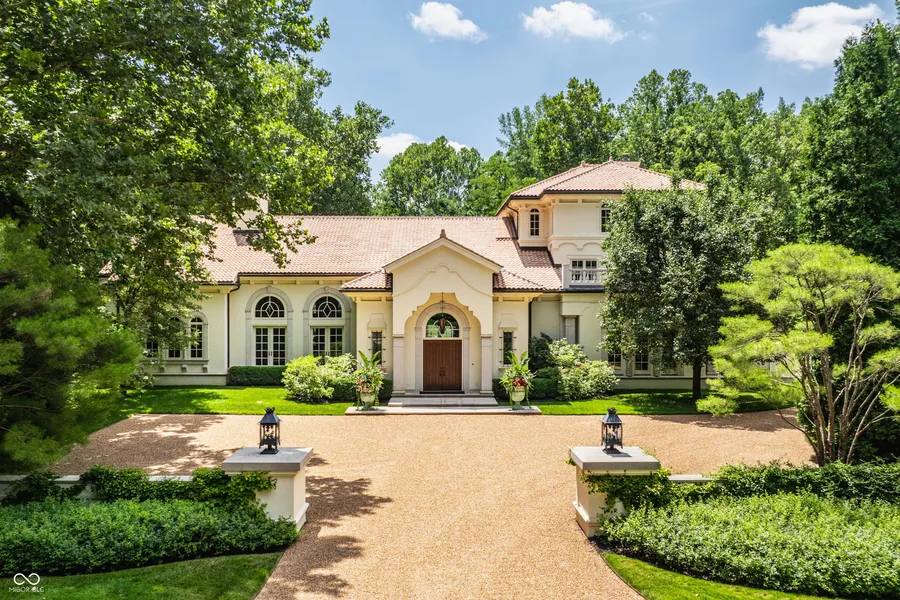This exquisite, one-of-a-kind custom home in the prestigious gated Alverna neighborhood was designed by noted architect J. Landfair Welty and built by accomplished custom home builder RJ Klein in 1996. The home exudes characteristics of Mediterranean Revival architecture, featuring stucco walls, a red tile roof, intricate carvings, and arched windows and doorways. Built on perhaps the most private lot in Alverna on 4.6 wooded acres, the property offers a luxury escape, only minutes from shopping, dining and top-rated schools. Custom landscaping compliments the beautiful courtyard and features a hand carved limestone fountain, perfect for posh entertaining or peaceful relaxation - seamlessly blending indoor and outdoor living. The interior consists of 3 levels with 4 bedrooms, 4 full baths, 3 half baths and approx. 10,448 finished square feet. Upon entering, you are greeted by the stunnin...
