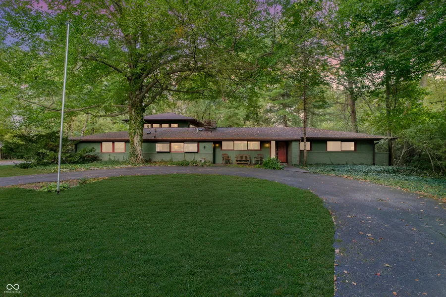 Here it is, your new Mid Century Modern home on a huge wooded lot on a cul-de-sac near 91st & Spring Mill Rd.! Take a look at this unique property! It has entertaining space galore! The living room is open to the dining room, and there is also a family room with a gas fireplace and a bonus room/craft room/office. The primary suite has 2 large closets, a sitting area and access to the outdoor deck. The other main floor bedroom has windows on 3 walls and an unbelievable view of the private backyard. The third bedroom suite is upstairs and has a resort feel, with windows overlooking the wooded backyard. Off of the bright, light kitchen with a view of the front yard is a laundry room/mudroom and a half bath with access to the side load 2 car garage. 2014-New Furnace (Furnace #1 in garage); 2019-New HVAC system; 2019-New roof, gutters and replaced the deck around the house; 2023-New Furnace (Furnace #2 in Kitchen Closet). Outside, is a newer deck for your enjoyment and a screened in porch with screens on all sides. The backyard has a park-like feeling with so many trees it's a private retreat. The 1.3 acre yard could easily accommodate a pool, if you wish!