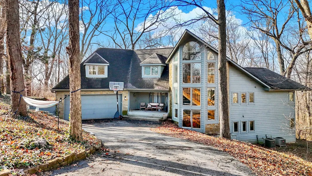 A rare mid-century beauty nestled on 1.38 acres at one of the highest point in Marion County, this stunning 5-bedroom, 3.5-bath home offers an exceptional blend of elegance and functionality. Homes in this coveted location rarely come on the market. You'll be greeted by a striking winding wooden staircase, cathedral ceilings, dual-sided fireplace and windows galore. The separate dining room and wraparound deck make this home perfect for entertaining while offering breathtaking views and sunsets. The heart of the home is the extended kitchen, featuring new appliances (2022), 7 skylights, custom built ins, stylish new light fixtures & granite throughout. The walk-out basement provides additional living space, and the unfinished room above the heated garage offers endless possibilities. The flex room with a separate entrance, is ideal for an office, in-law suite, or next-gen living. A fully fenced backyard and large wooded lot ensure both privacy and a connection to nature. Updates like the new washer/dryer (2023) and water heater (2021) add peace of mind. Dual furnaces & air conditioners routinely tuned up & maintained; excellent condition.