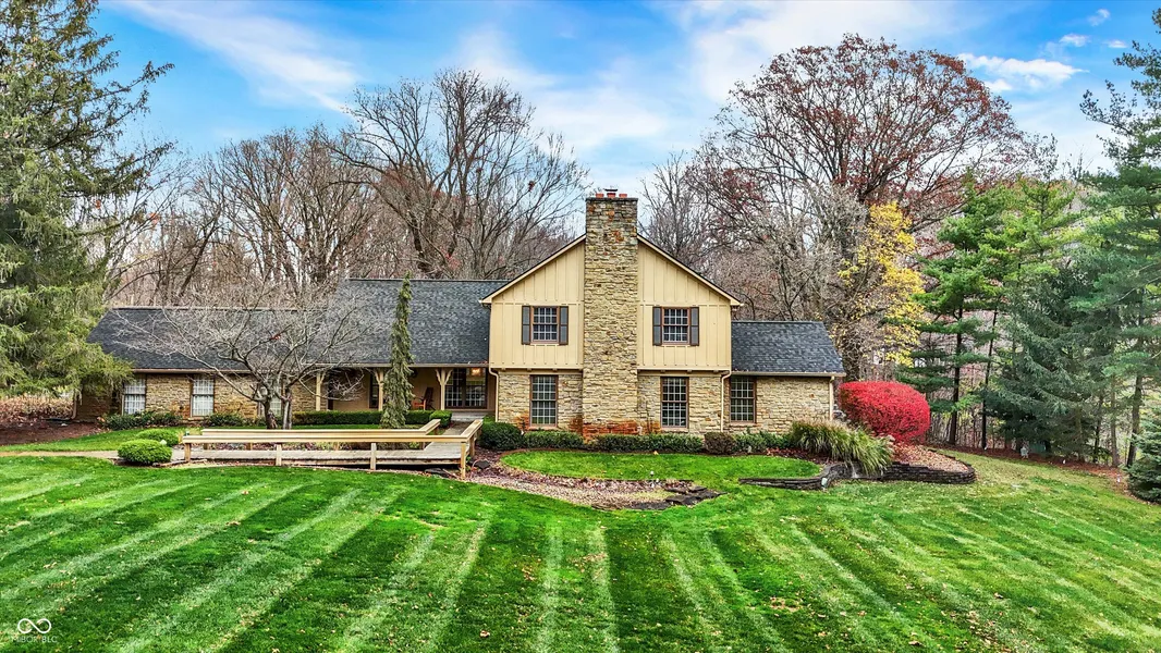 The luxury of privacy with the convenience of access to all our city has to offer plus award winning schools! This 3+ acre estate welcomes you with a circular drive & breathtaking scenery. Large foyer sets the stage for this custom built home and attention to detail. The room sizes alone are sure to impress. Inviting great room is accented with decorative wood beams, paneling, built-ins & wood burning fireplace. Step thru the french doors in the formal dining to the light & bright eat-in kitchen w/ solid surface counters, double ovens, heated floors. Near the kitchen is the vaulted screened porch with skylights letting you experience all the serenity nature has to offer. Stunning main level office/study features wood paneling and custom shelving. This home has not one but 2 primary bedrooms with en-suite baths. Main level primary offers a fireplace,custom shelves in walk-in closet and heated bath floors. 3 addt'l spacious bedrooms upstairs. Fresh neutral paint and carpet. New lighting. Unfinished basement provides ample storage and workshop. If you need garage space, you'll love the 6 garage bays 8855 Jules Lane offers. The property has well manicured landscaping, irrigation system and a darling playhouse/shed. This home has over $90k in recent updates- please check out the extensive features list. You truly get the best of both worlds-your own slice of paradise combined with easy access to shopping, dining, airport, downtown & Eagle Creek.