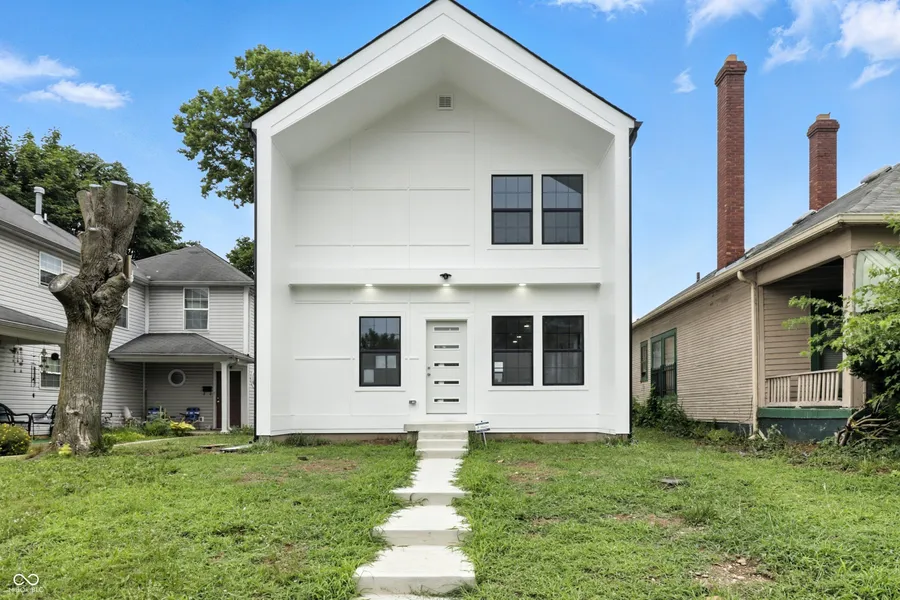 Discover this fantastic new construction home, completed in 2025 and ready for its first owner! This 3-bedroom, 2.5-bathroom property boasts an inviting, spacious living area that opens to the kitchen, perfect for entertaining. Throughout the main living spaces, you'll find ceilings illuminated by ample lighting. The contemporary black windows provide a sophisticated touch to the exterior and interior. Upstairs, stylish handrails lead to the second floor, featuring a comfortable master bedroom with its own private bathroom and two additional well-sized bedrooms. A significant bonus: the garage foundation is already prepared in the back, allowing you to easily complete a garage or utilize the space for additional parking. Its excellent location puts you close to downtown Carmel, the Children's Museum, local coffee shops, and a variety of dining options.