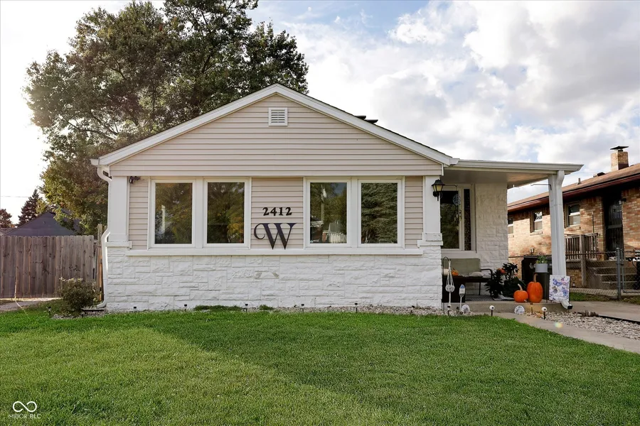 Welcome Home to this beautifully remodeled 2BR, 1BA brick ranch just minutes from Garfield Park and Fountain Square. Spacious sunroom at the front of the home currently being used as a mudroom. Updated kitchen features dove gray cabinets, marble look countertops, tile backsplash & stainless steel appliances. Holiday entertaining will be a breeze with plenty of space for your guests between the formal living rm and family rm. Decorative fireplace in living rm. Updated bath with soaker tub, custom tile surround, tile flooring, upgraded fixtures, vanity & medicine cabinet. Primary bedroom offers walk-in closet and carpeting. 2nd bedroom offers wall to wall display shelf and carpeting. Owner has done a ton of upgrades including all brand new vinyl replacement windows, tankless water heater, central air. Roof, gutters and siding only 4 years old. Off street parking with private driveway in th...