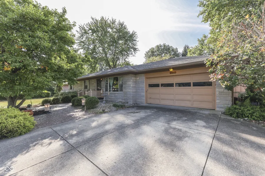 Welcome to this charming Bedford stone ranch home located at 155 E Stop 13 Rd, Indianapolis, IN 46227, nestled in the serene neighborhood of Powers Meridian Heights with NO HOA. This beautifully constructed home, originally built by an architect for his family in 1957, showcases quality craftsmanship and thoughtful design throughout. The main level features three spacious bedrooms and 1.5 baths, all adorned with original hardwood floors that add warmth and character to the living spaces. The inviting family room is perfect for gatherings, while the darling kitchen, complete with all appliances, offers a cozy breakfast nook for casual dining. The finished basement expands the living area with a large recreation room featuring built-in bookcases, a bonus room, a storage room, and a substantial utility room equipped with a washer, dryer, utility sink, and ample storage cabinets. This additional space is ideal for entertaining or creating a personalized retreat. Outside, enjoy the fully fenced rear yard, perfect for privacy and relaxation. The property includes a huge mini barn, a deck, and a patio with a gazebo, making it an excellent space for outdoor activities and entertaining. The attached two-car garage provides convenience and additional storage. Situated on a mature, tree-lined lot of approximately 0.41 acres, this home offers a peaceful setting while being part of the Perry Township Schools district. The property is conveniently located with easy access to local amenities and transportation routes. This home is equipped with modern conveniences such as forced air gas heating, central electric cooling, and a municipal water connection, ensuring comfort and efficiency. Don't miss the opportunity to own this unique and well-maintained home that combines classic charm with modern amenities.