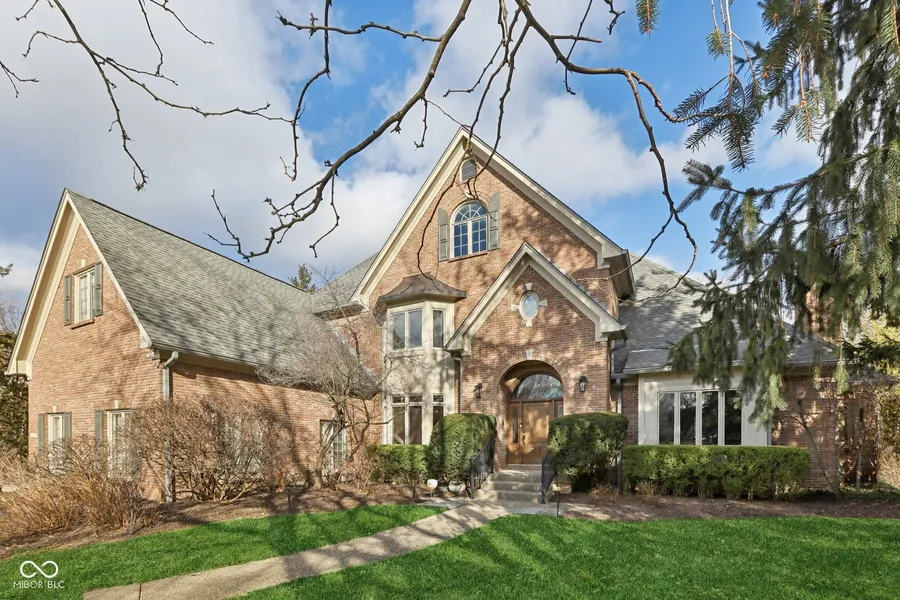 This exceptional luxury residence offers a rare blend of refined living and resort-style amenities, all set on a breathtakingly private, 1.57 Acre tree-lined homesite. The backyard is a true retreat, featuring a newly renovated inground pool area that includes new concrete patio, new pool liner, new electric cover, enhanced landscaping and new retaining walls. The outdoor serenity continues with an outdoor firepit just beyond the meandering creek accessed with a charming walk-over bridge. Inside, the home is equally impressive. The finished walk-out basement is designed for entertaining and relaxation, showcasing a full bar with cool copper hammered sink and equipped with everything you need like a kegerator, ice machine, dishwasher and mini-fridge. There is recreation space on the other side of the basement 2-sided fireplace plus a killer home theatre with ornate coffered ceiling! There is plenty of storage to go along with a bonus room (currently fitness area) and a full bath. The main level offers a serene primary suite with two walk-in closets, dual vanities, and access to a private screened-in porch. An elegant den/library features a fireplace, built-in bookshelves, and glass French doors, while the stunning two-story great room captivates with custom built-ins, a fireplace, dramatic coffered ceiling, and expansive windows overlooking the peaceful backyard. The updated kitchen is both stylish and functional with quartz countertops, center island, stainless steel appliances, breakfast bar, and sun-filled breakfast room. A butler's pantry with wet bar, wine fridge, and abundant cabinetry seamlessly connects the kitchen to the formal dining room. Additional highlights include a spacious finished three-car garage with tall ceilings, utility tub and workshop area! There is abundant storage throughout, a NEW HVAC system, and NEW water heaters. This remarkable home delivers luxury, comfort, and privacy in every detail. Just a short drive to the airport & downtown Indy