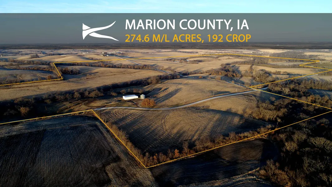 KILOTERRA is proud to offer this highly productive Marion County Farm for sale, located just 40 minutes from the Des Moines area. At 274.6+/- total acres, this property has a great mix of income and recreational opportunities. The farm has 192 +/- FSA Tillable acres boasting a 60 CSRII and 31+/- acres are fenced for pasture at 56.2 CSRII. The farm also features a large 40 x 72 Machine Shed which was recently repainted and a 10k Bushel Dryer Bin with Auger. The entire farm lease is open for the 2019 Crop Season giving total flexibility for the new owner. A hunting lease would certainly be a great way to increase the return on this farm as well.
